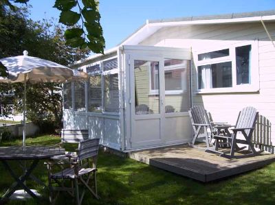 Slightly more spacious than our other chalets with a conservatory dining area. Sleeps 5/6 in double room with single bed, bunk room and sofa bed in lounge.This chalet has a bath with electric shower over.