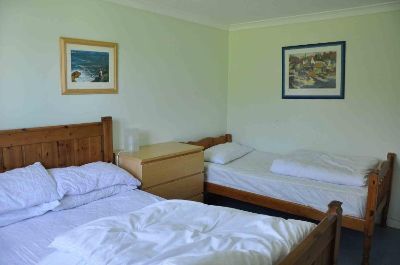 Main bedroom has double bed and a single. There are bunks in the second bedroom.